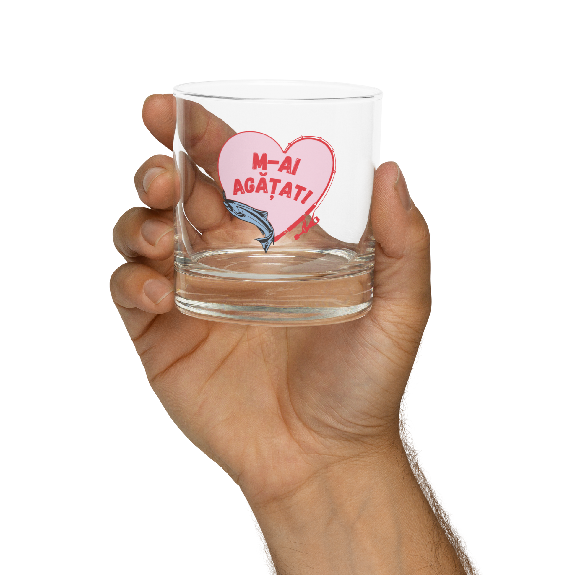 "Hooked on You" Rocks Glass (Romanian)