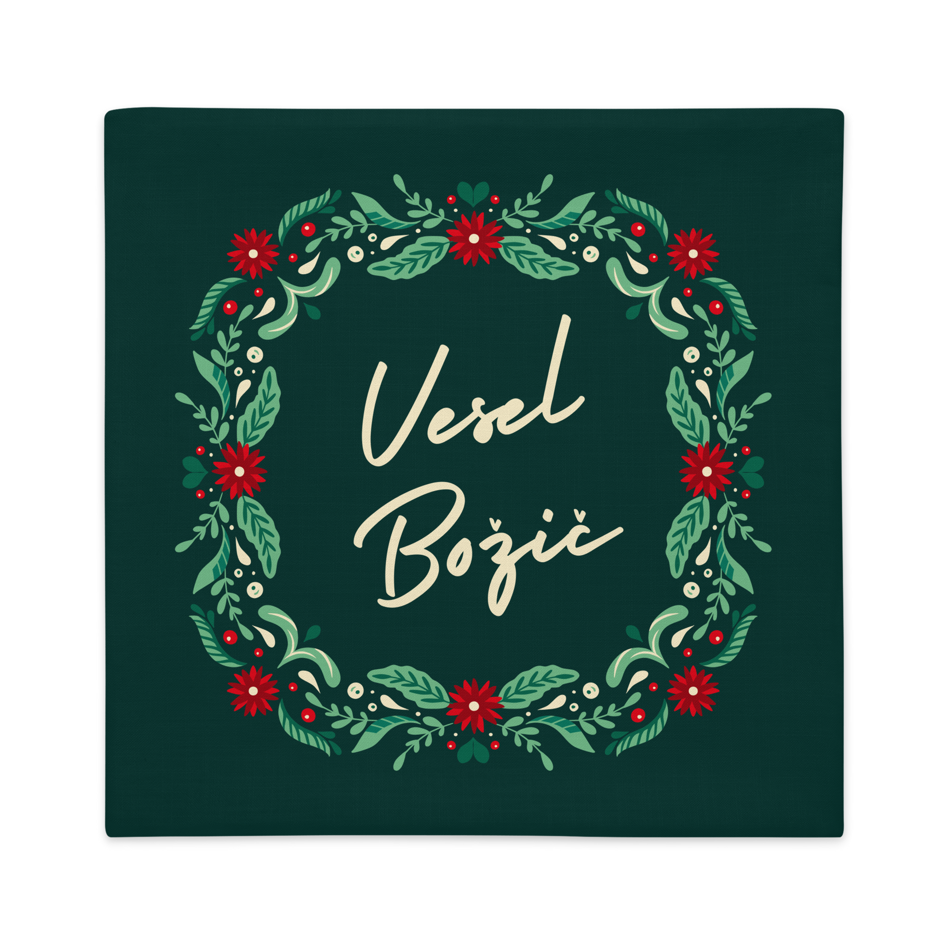 Add Slovenian charm to your holiday décor with our Vesel Božič Pillow Case, featuring a festive green wreath and elegant script. 🇸🇮